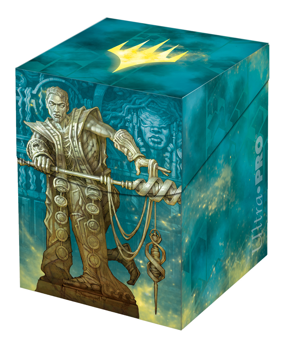 The 100+ Deck Box features vibrant, full-color artwork from Magic: The Gathering and includes a deck divider. Made with archival-safe, non-PVC, rigid polypropylene materials, you can store up to 100 double-sleeved cards with confidence. The self-locking lid keeps your cards securely stored when not in use, while also offering easy access. Sized for standard size trading cards.
