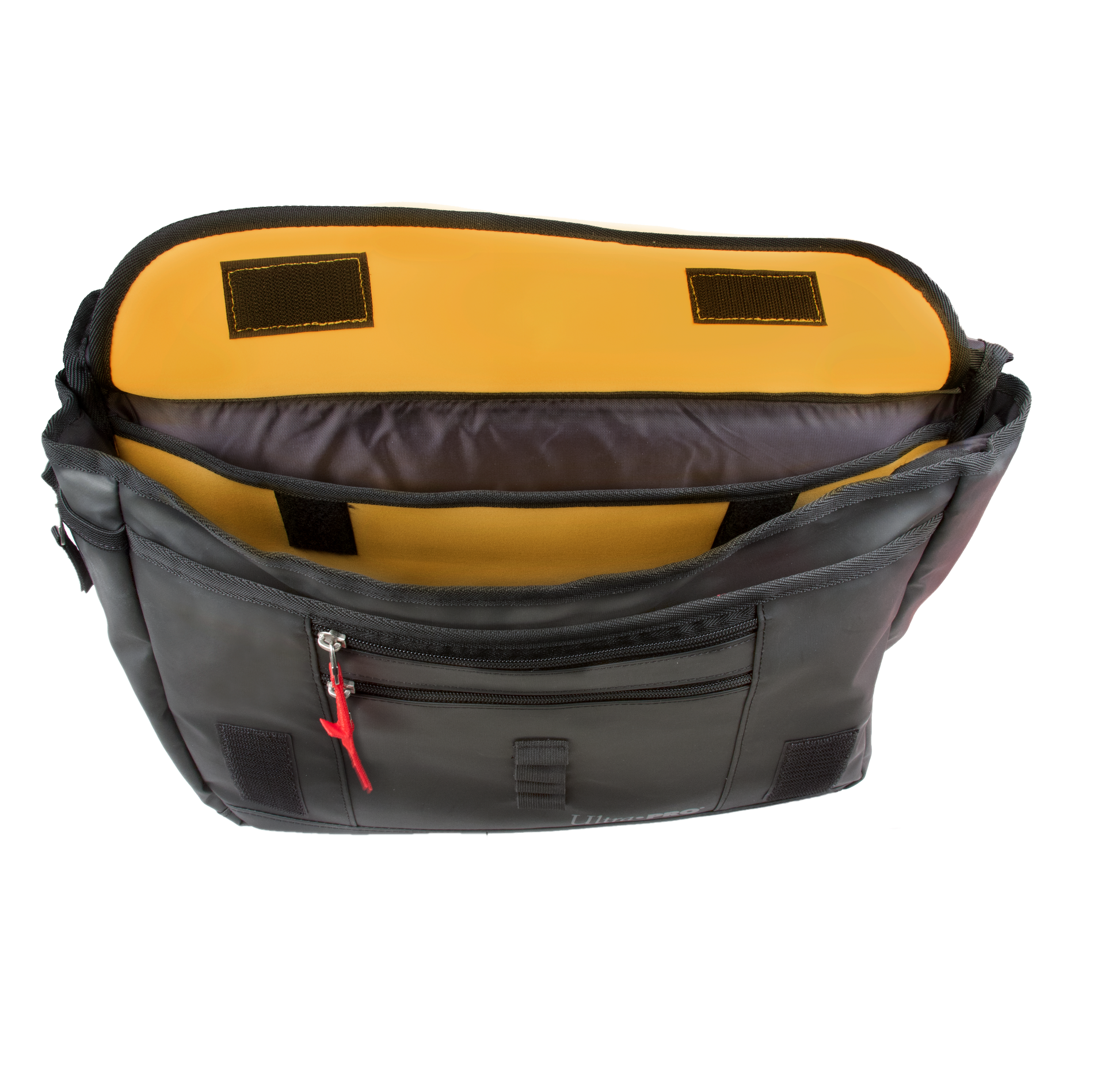 The Gamers Bag is a versatile messenger bag with an adjustable, quick-release, padded shoulder strap. Durable elastic straps in the main body compartment to secure your deck boxes. Neoprene laptop & e-reader pouches, backside compartment sized to fit a fully loaded PRO-Binder & playmat tube holder. Multiple zippered compartments for dice, pad & pen and other gaming accessories. Interchangeable flap to customize your style & this bag comes with bonus flap with Dragon design.