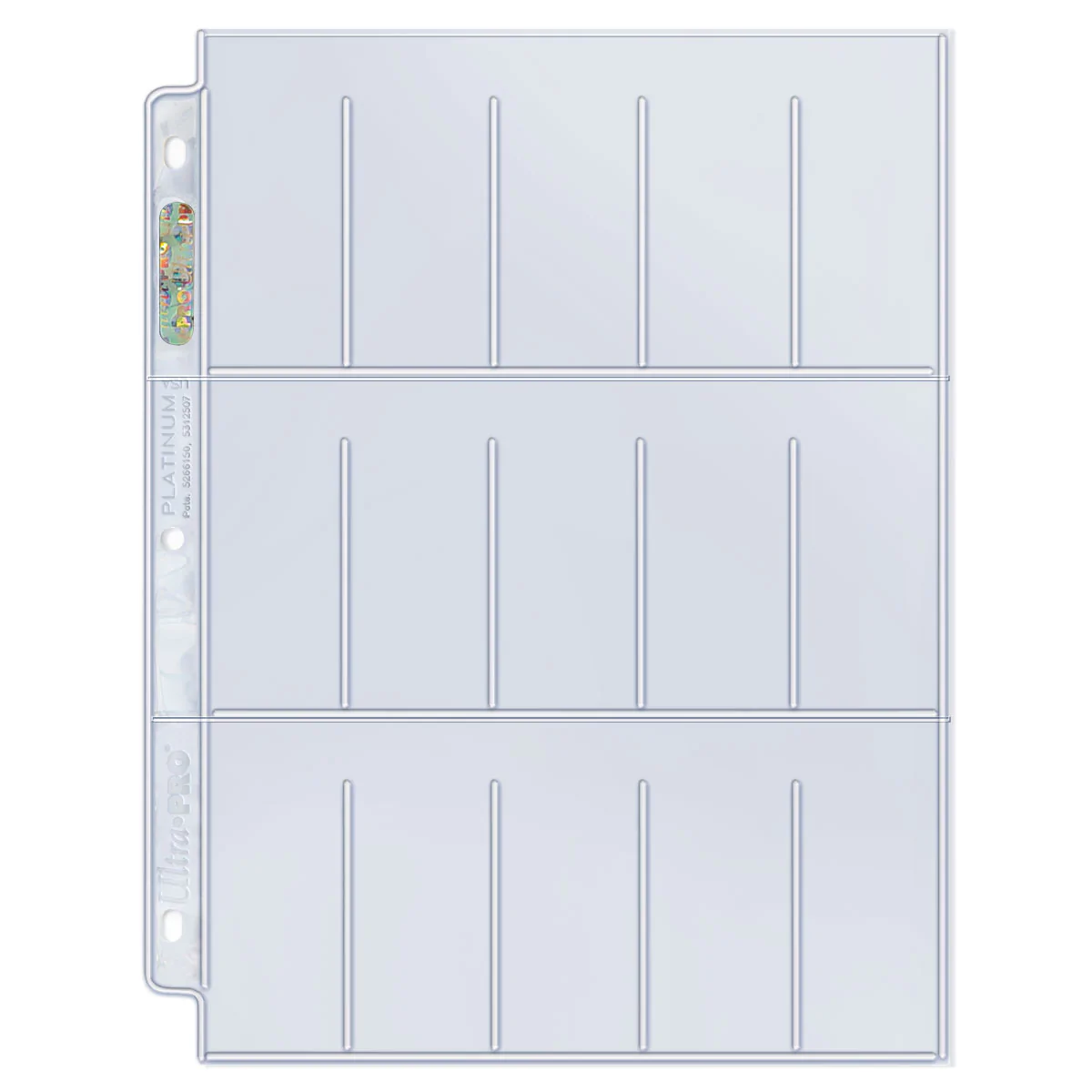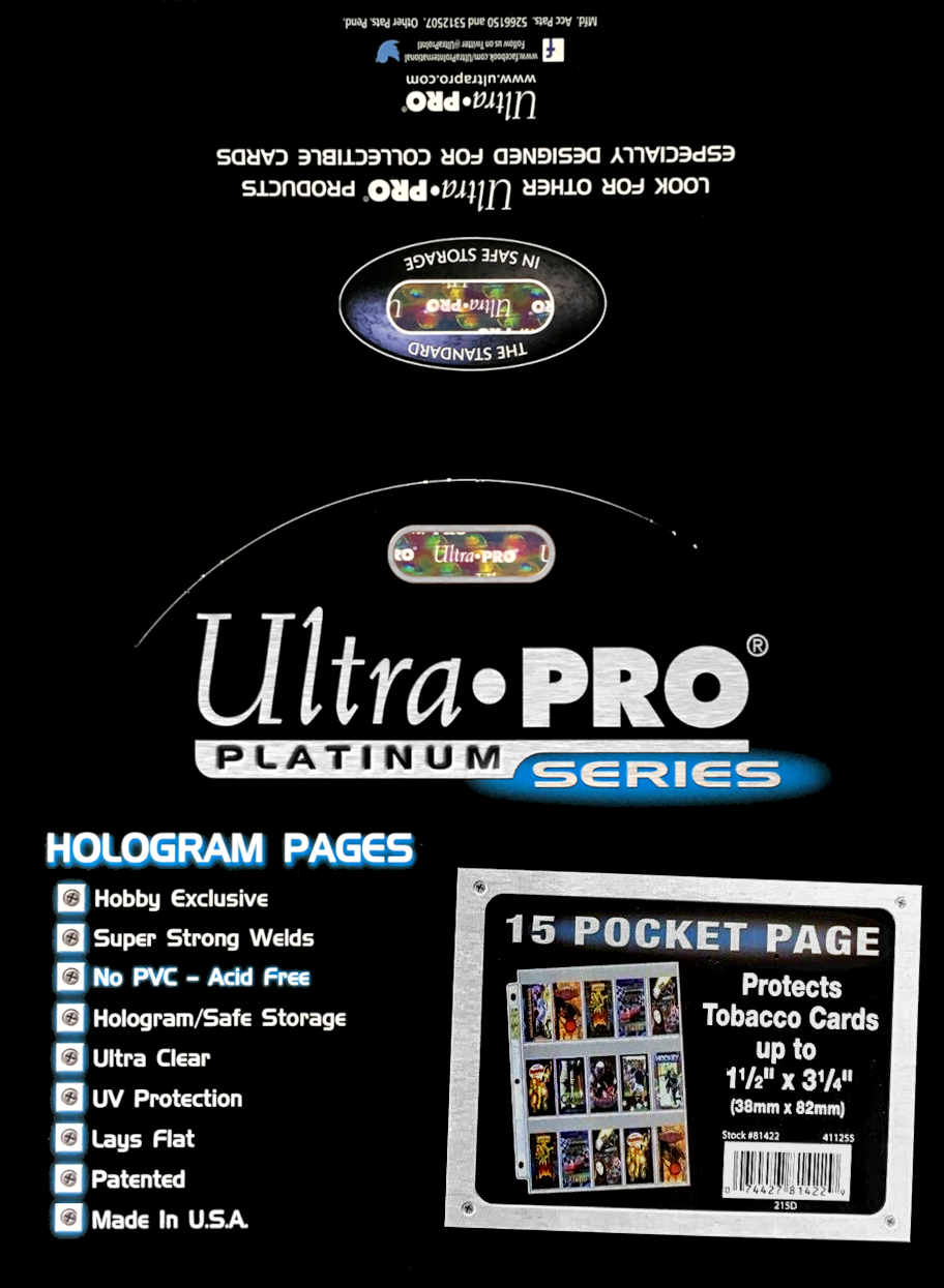 As Ultra PRO's flagship line storage pages, these Platinum Series pages are the premier choice for collectible trading cards, postcards, photos, artist sketch cards, ticket stubs, coupons, and so much more. Each page bears Ultra PRO's hologram quality & authenticity seal on the spine. These pages are 3-hole punched and sized to fit in Ultra PRO's standard-size 3-ring albums.