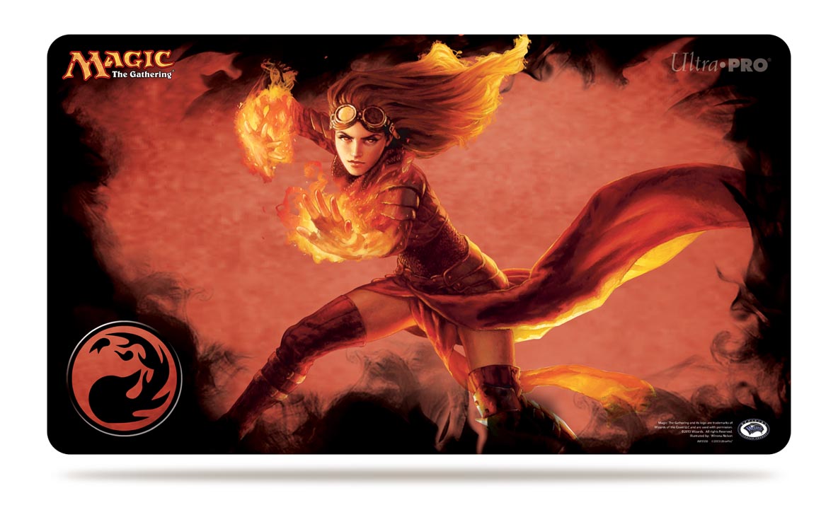 Bring the fiery heat of Chandra Nalaar to your next Friday Night Magic session. Part of the fourth wave of the Mana series, this playmat is made with premium fabric top to prevent damage to cards during game play. This playmat is also the perfect decorative over-sized mouse pad for computer and laptop workstations. Non-slip rubber backing lets the playmat lay flat and prevents it from shifting during use.