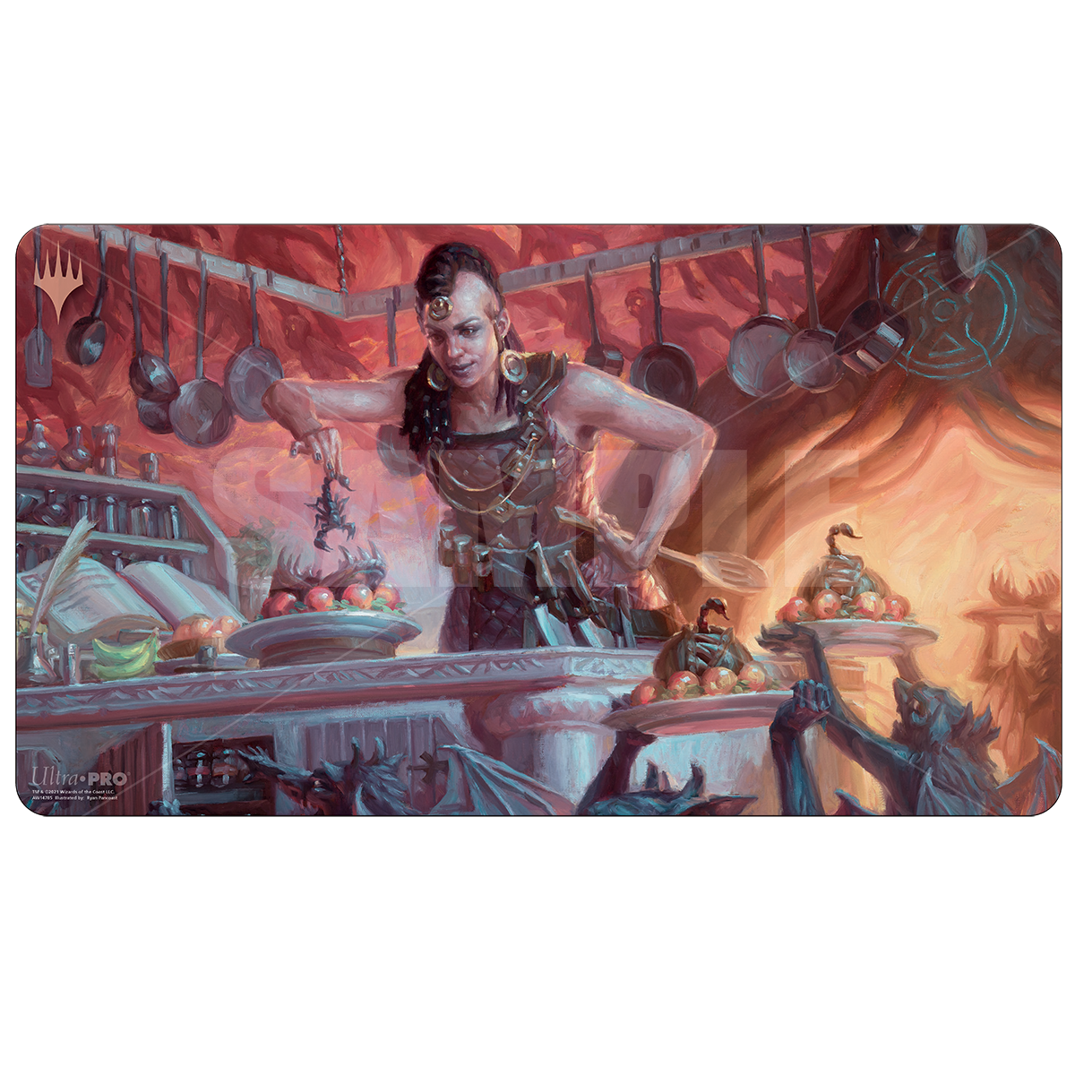 Ultra PRO's Playmats feature exclusive crops of popular Magic: the Gathering artwork. Made with a soft fabric top to reduce damage to cards during play and a non-slip rubber backing to keep the playmat from shifting during use, playmats enhance the gameplay experience. With dimensions of approximately 24 in. x 13.5 in., a playmat also makes an excellent oversize mousepad for home or office.