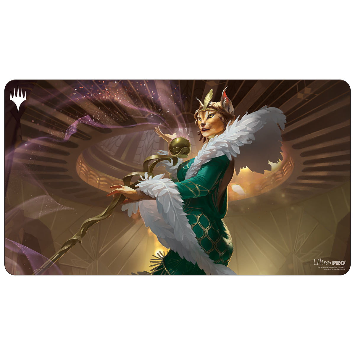 Playmats feature popular Magic: The Gathering artwork. Made with a soft fabric top to reduce damage to cards during play and a non-slip rubber backing to keep the playmat from shifting during use, playmats enhance the gameplay experience. With dimensions of approximately 24 in. x 13.5 in., a playmat also makes an excellent oversize mousepad for home or office.
