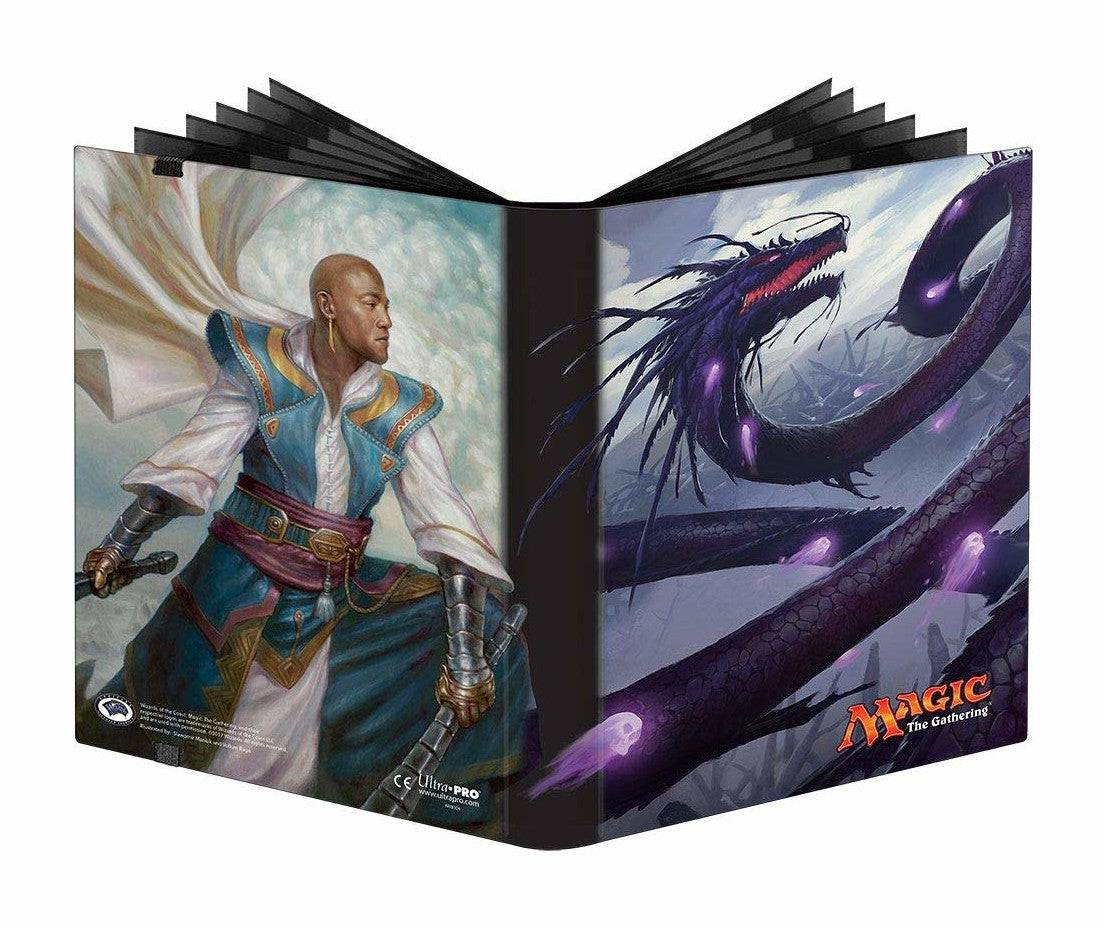 The Ultra PRO 9-pocket PRO-Binder stores and protects your collectible gaming cards while showcasing detailed, full-color art from the highly popular trading card game Magic: The Gathering. Embossed low-friction black backing material gives cards a classic framed look. Side-loading pocket prevent cards from easily falling out in transit. Elastic strap holds the binder securely shut when not in use. All materials made from archival-safe, acid-free non-PVC materials. Holds 360 Cards in Ultra PRO Deck Protector sleeves.