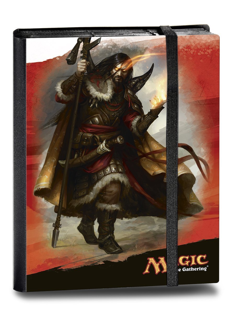 The Ultra PRO 9-pocket PRO-Binder stores and protects your collectible gaming cards while showcasing detailed, full-color art from the highly popular trading card game Magic: The Gathering. Embossed low-friction black backing material gives cards a classic framed look. Side-loading pocket prevent cards from easily falling out in transit. Elastic strap holds the binder securely shut when not in use. All materials made from archival-safe, acid-free non-PVC materials. Holds 360 Cards in Ultra PRO Deck Protector sleeves.
