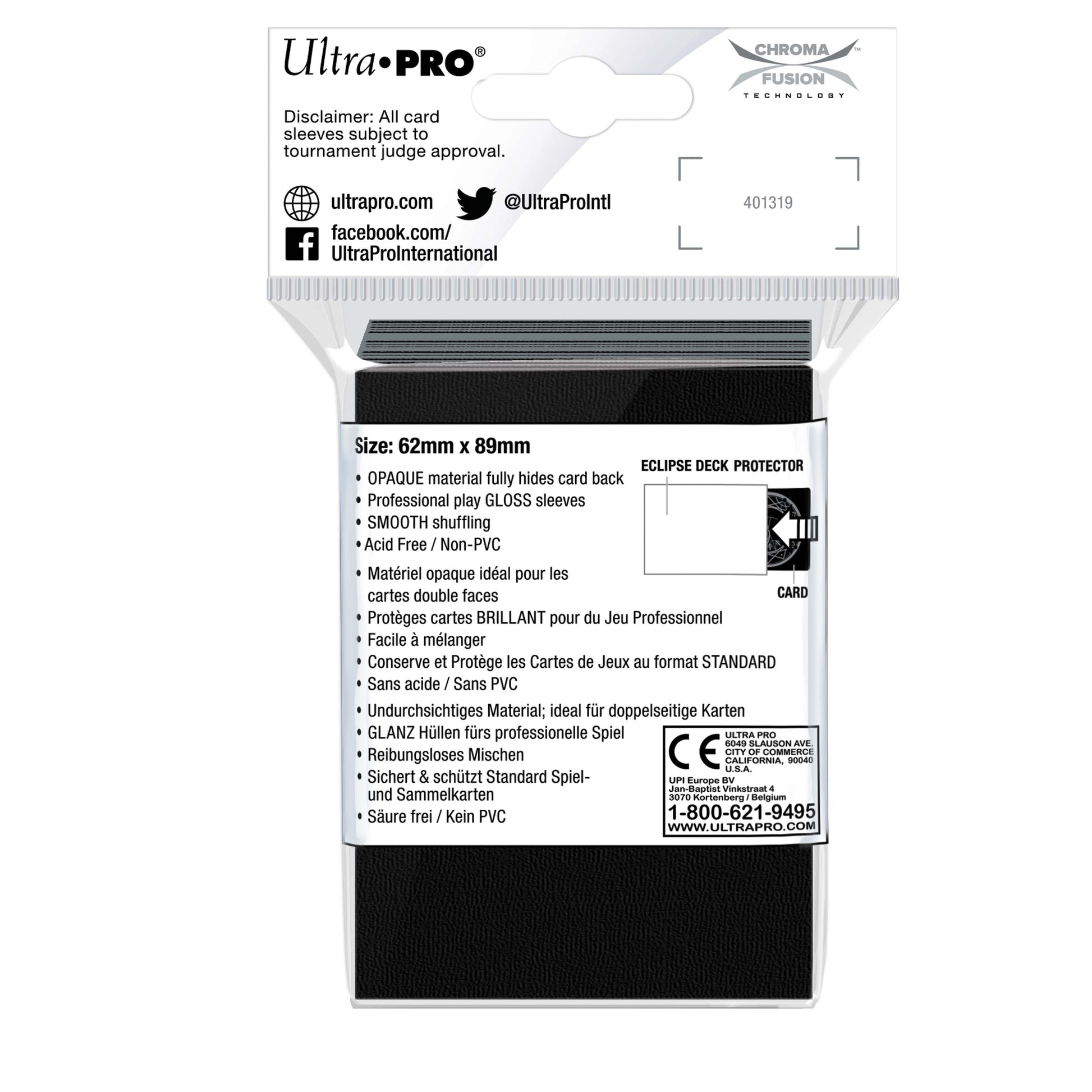 See foiled and holographic cards in a new light with Ultra PRO's Eclipse Gloss sleeves. Ultra PRO's exclusive ChromaFusion technology ensures fully opaque back. With superior durability balanced with excellent shuffle-feel, these Deck Protectors sleeves are ideal for tournament use.
