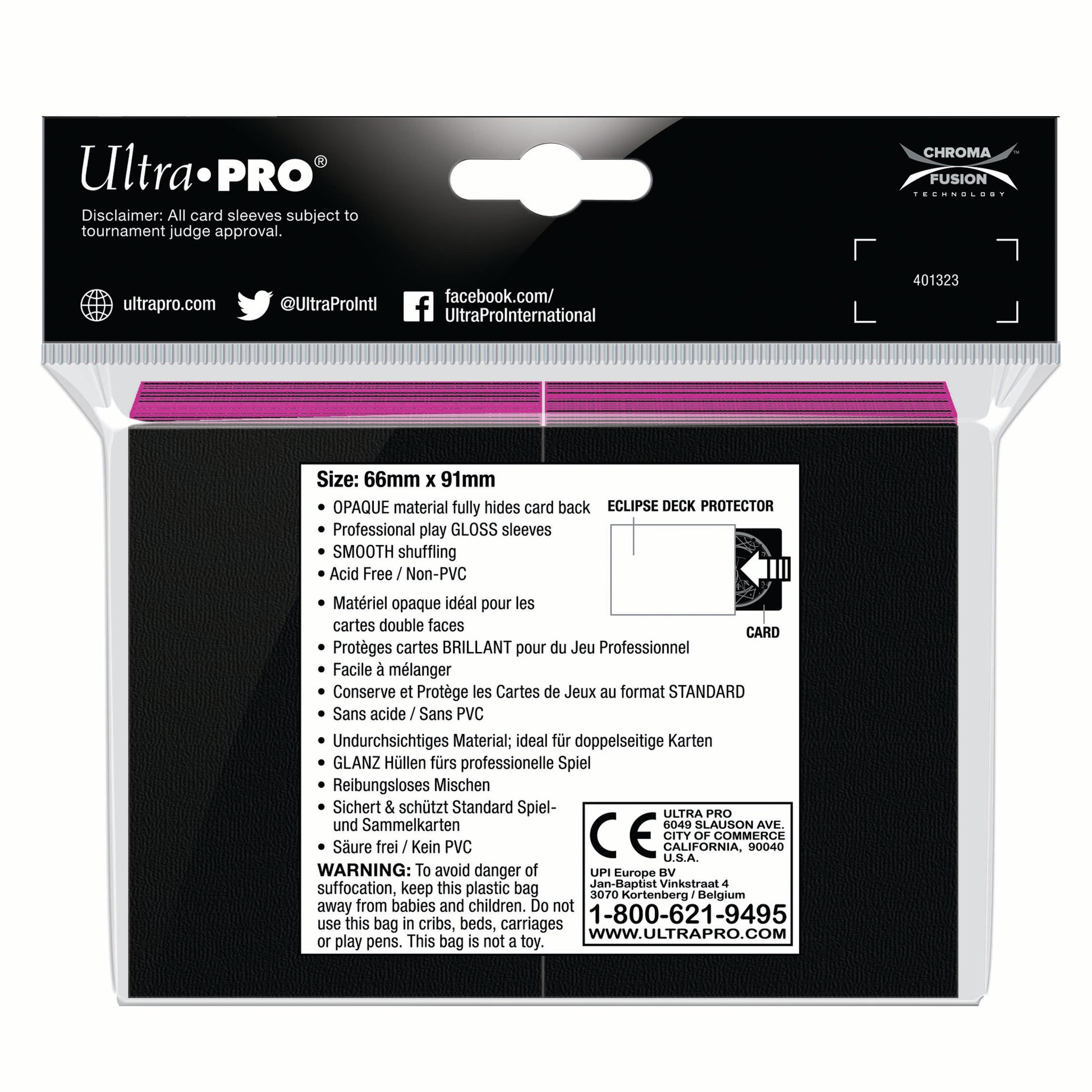 See foiled and holographic cards in a new light with Ultra PRO's Eclipse Gloss sleeves. Ultra PRO's exclusive ChromaFusion technology ensures fully opaque back. With superior durability balanced with excellent shuffle-feel, these Deck Protectors sleeves are ideal for tournament use.