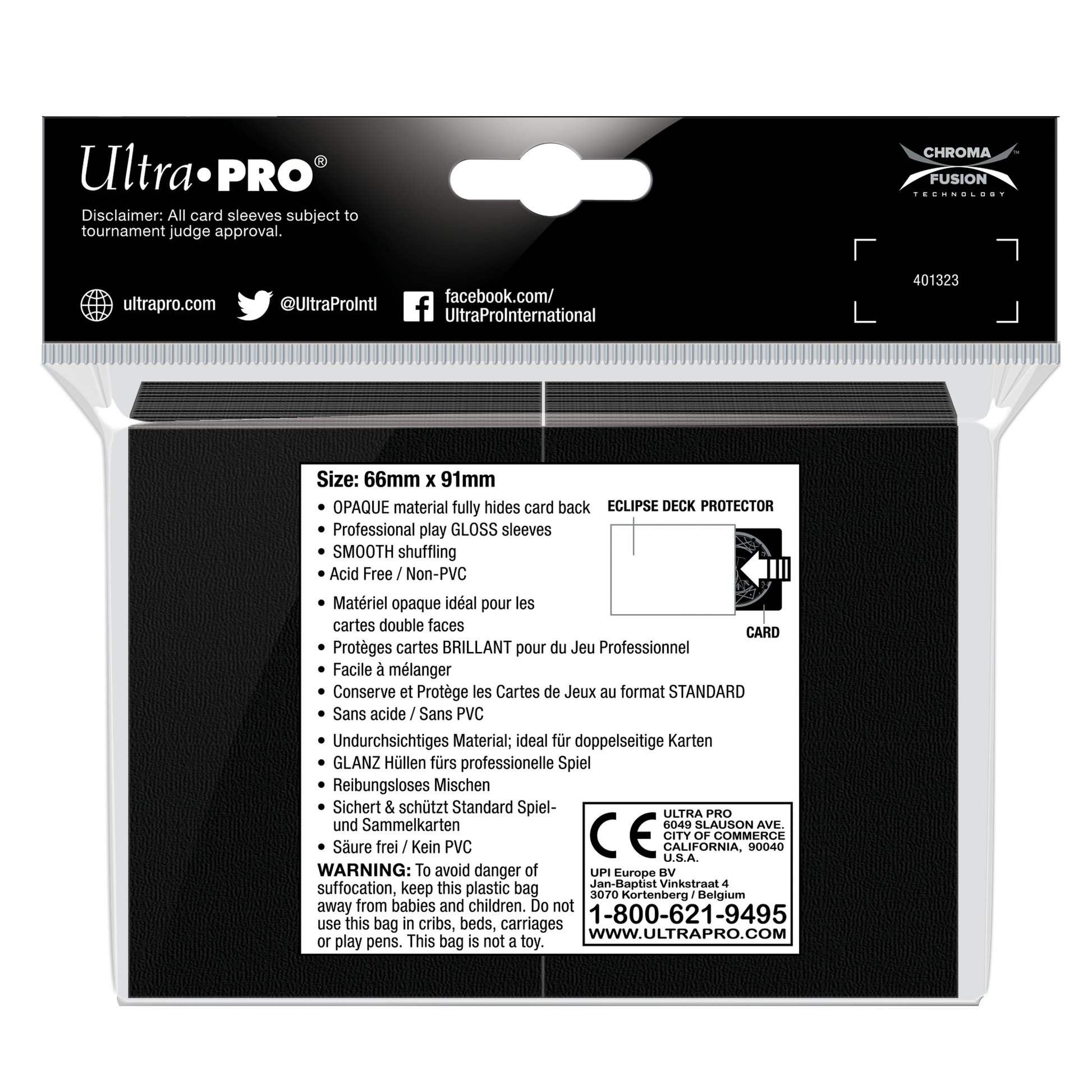 See foiled and holographic cards in a new light with Ultra PRO's Eclipse Gloss sleeves. Ultra PRO's exclusive ChromaFusion technology ensures fully opaque back. With superior durability balanced with excellent shuffle-feel, these Deck Protectors sleeves are ideal for tournament use.