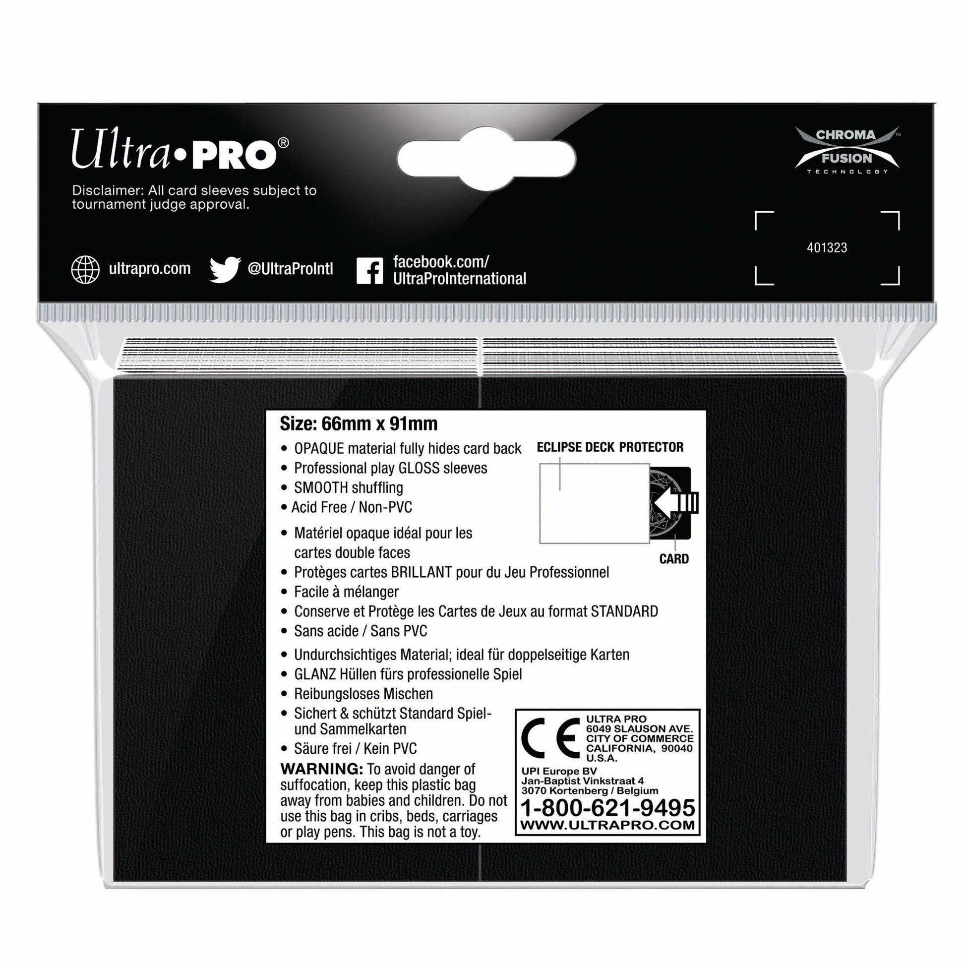 See foiled and holographic cards in a new light with Ultra PRO's Eclipse Gloss sleeves. Ultra PRO's exclusive ChromaFusion technology ensures fully opaque back. With superior durability balanced with excellent shuffle-feel, these Deck Protectors sleeves are ideal for tournament use.