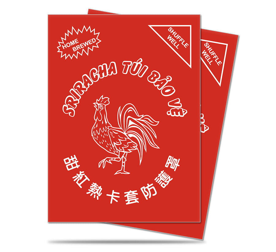 Make your next game SPICY HOT with Ultra PRO's Sriracha Deck Protector sleeves! Produced with Ultra PRO's latest dual-layer "Eclipse" film technology with red outer layer and green inner layer. The clear side uses non-glare matte material for soft feel and smoother shuffle. These sleeves are sized to store and protect standard (Magic) sized cards.