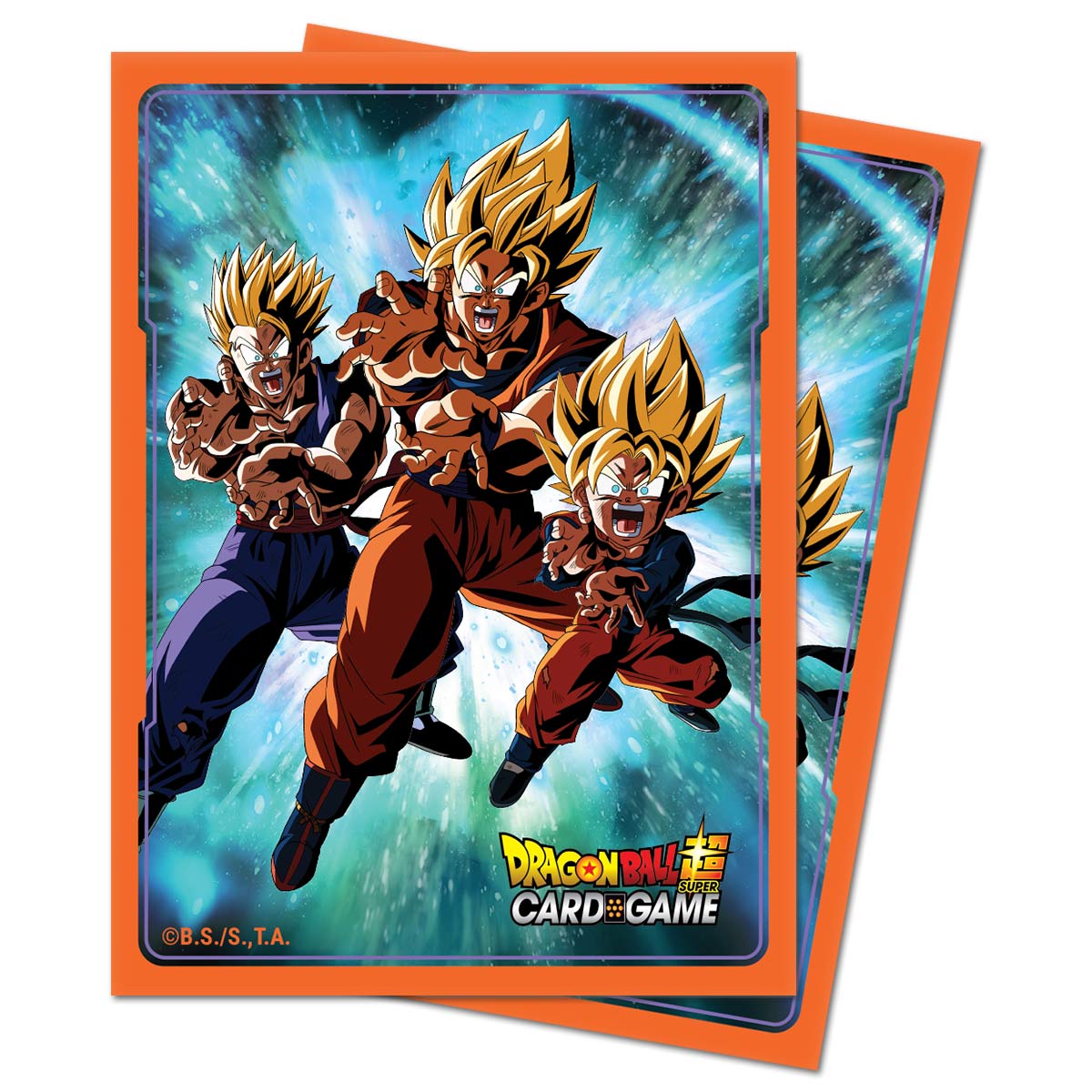 Fight your opponent in style at your next gaming session with these official Dragon Ball Super Protector sleeves featuring "Family Kamehameha"! Ultra PRO's Deck Protector sleeves are designed to protect your trading card game cards from damage during gameplay. They are sized to fit standard size gaming cards and made with archival-safe polypropylene film. Each pack contains 65 sleeves with high resolution and detailed printing. Made by Ultra PRO in partnership with BANDAI CO., LTD.