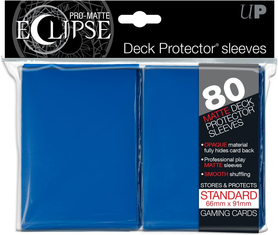 The Eclipse Matte Deck Protector sleeves offer a fully opaque back and anti-glare matte display of the card face. With ChromaFusion technology, these sleeves feature full opacity, effortless glide shuffle, and split-resistant seal, making Eclipse Deck Protector sleeves premium trading card protection. These sleeves are designed to fit standard size cards up to 2.5" X 3.5" in dimension, such as Magic: The Gathering and Pokemon trading card game cards. Each pack includes 80 individual sleeves and is manufactured in California, USA.