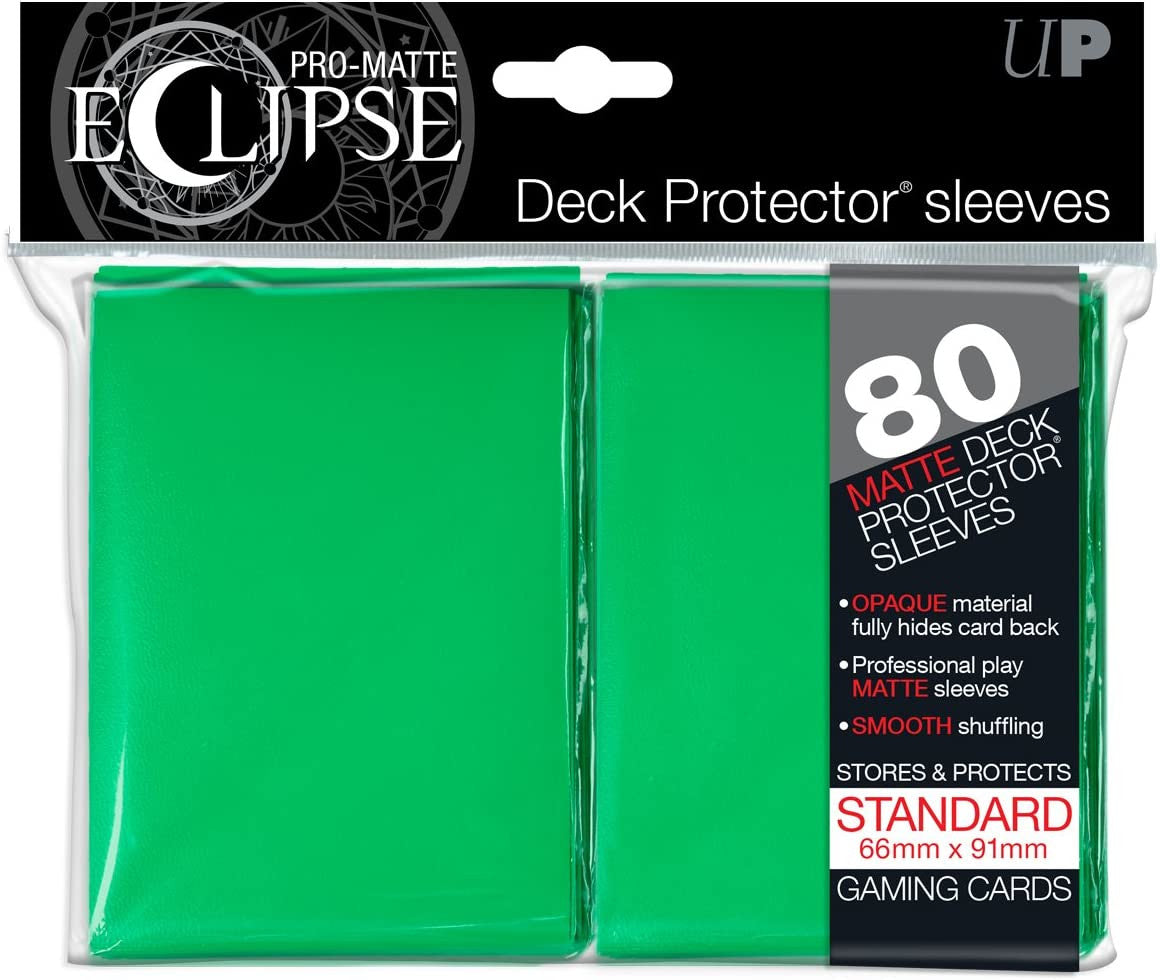 The Eclipse Matte Deck Protector sleeves offer a fully opaque back and anti-glare matte display of the card face. With ChromaFusion technology, these sleeves feature full opacity, effortless glide shuffle, and split-resistant seal, making Eclipse Deck Protector sleeves premium trading card protection. These sleeves are designed to fit standard size cards up to 2.5" X 3.5" in dimension, such as Magic: The Gathering and Pokemon trading card game cards. Each pack includes 80 individual sleeves and is manufactured in California, USA.
