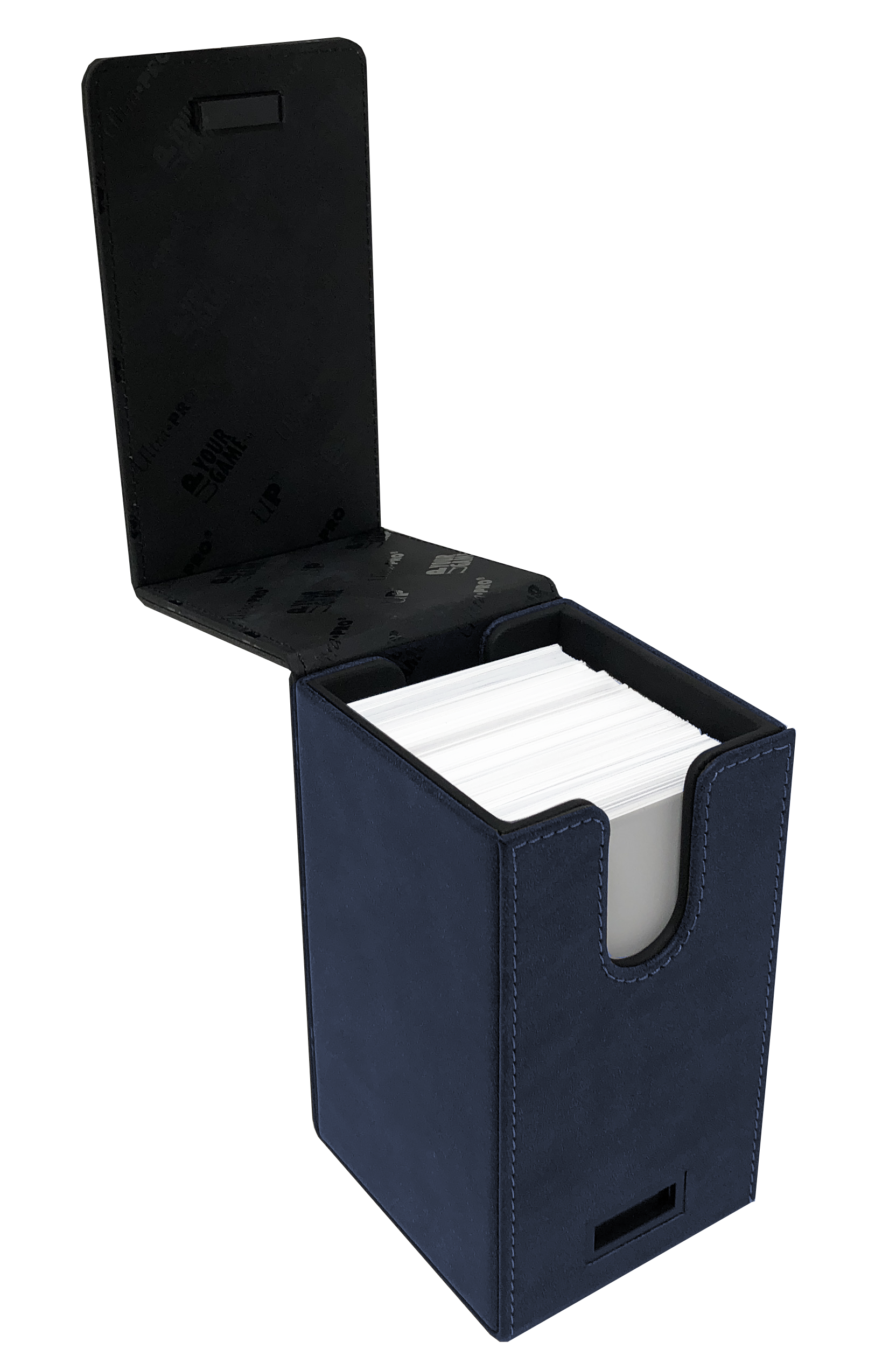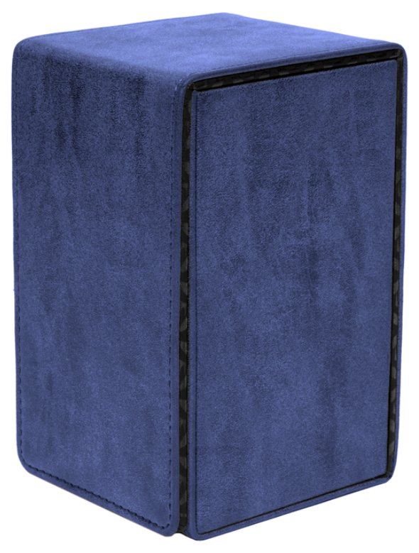 Premium Alcove Flip Box storage cases made with a suede-like material. The Alcove Flip Box can hold up to 100 double sleeved cards with its lid secured by strong magnetic closures utilizing multiple magnets for extra protection. The lid can be undone on both sides of the box to reveal dual thumb notches for easy access to your deck of cards. The Alcove Flip Box is a great storage device for organizing and protecting your collection.